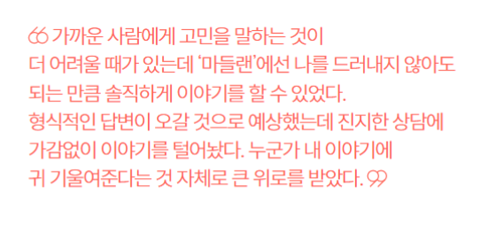 - 철저한 익명 보장으로 부담 없이 고민을 나눌 수 있음