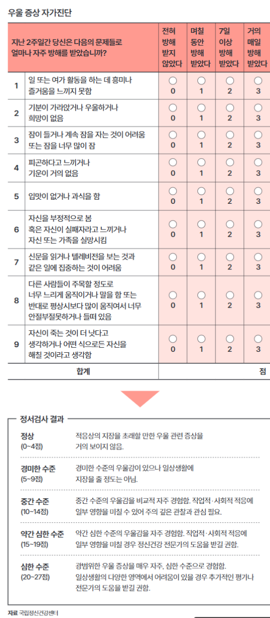 우울 증상 체크리스트