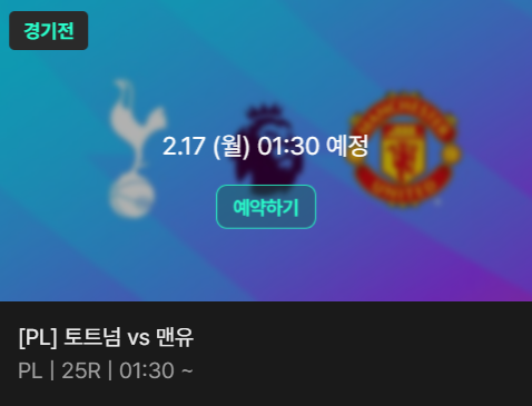 | 2024-01-15 | 프리미어리그 | 맨유 2-0 토트넘 |