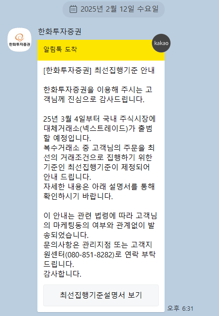 오늘 한화투자증권에서 최선집행기준 관련된 카톡 메세지를 받고 "이게 뭐지?" 궁금하셨을 텐데요.